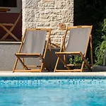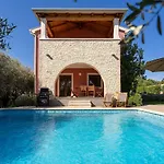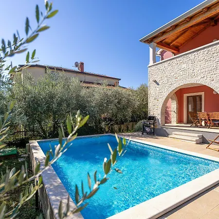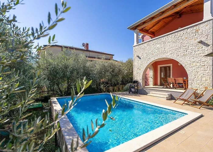 Idyllische Villa Mit Panorama Meerblick, Privatpool, Babybett, Aussendusche, Umgeben Von Oleander Und Oliven med 2 sovrum, som ligger 3 km från Aquapark Aquacolors Poreč, lockar gästerna med snorkling, dykning och vandring i området. Villan med 2 badrum, som ligger ungefär 10 minuter med bil från Acquario di Parenzo, erbjuder Wi Fi och en parkering.